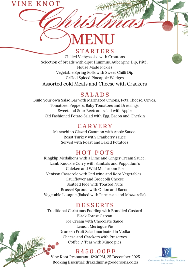 Situated next to the main hotel, The Vine Knot offers a family friendly a la carte menu. Open specific days only.
